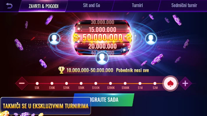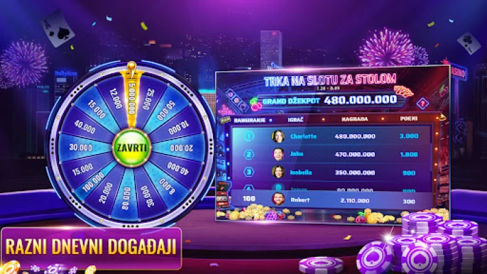 Izazovi prijatelje, uživaj u živahnom četu za stolom i izrazi se animiranim emotikonima i darovima dok blefiraš ili navijaš. Penji se na ljestvicama Lige i osvoji ekskluzivna priznanja, dok te pozivanje prijatelja nagrađuje dodatnim bonusima. Za dodatnu zabavu, zavrti visokokvalitetne 5x3 slotove ili mini slotove izravno za stolom, te otključaj vrhunske bonuse i funkcionalnosti kroz VIP Klub. Ostvari prestižne Prstenje i bedževe kroz natjecateljske aktivnosti, dovršavaj misije, osvajaj trofeje i sudjeluj u tematskim sezonskim događanjima. Tvoj napredak i čipovi sigurno su sinkronizirani na svim uređajima putem Google, Apple ili Facebook prijave, osiguravajući besprijekornu igru gdje god se nalazio.