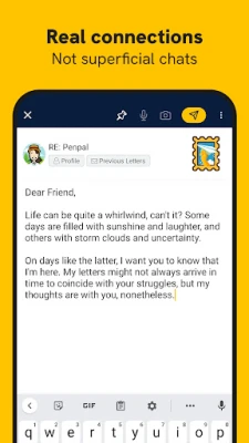 Slowly vam omogućuje stvaranje autentičnih prijateljstava diljem svijeta. Ponovno otkrijte čar dopisivanja i povežite se s dopisnicima kroz promišljena pisma. Uživajte u kulturnoj i jezičnoj razmjeni te radosti iščekivanja, stvarajući iskrene veze vlastitim tempom.